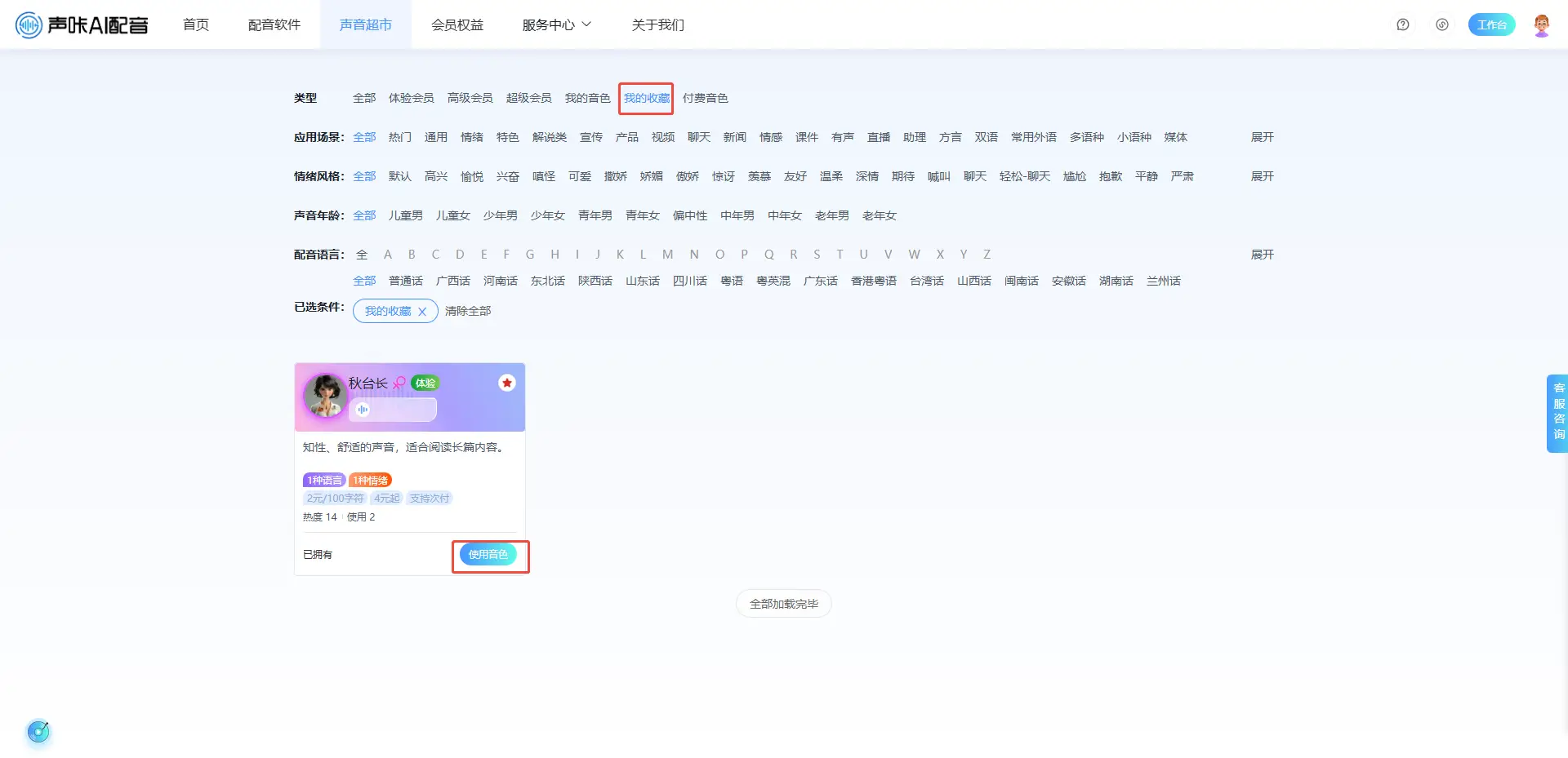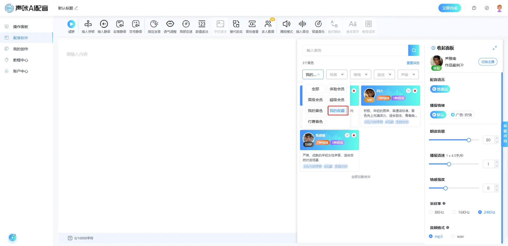 可在声音超市及调音面板点击收藏按钮即可收藏音色:如下图