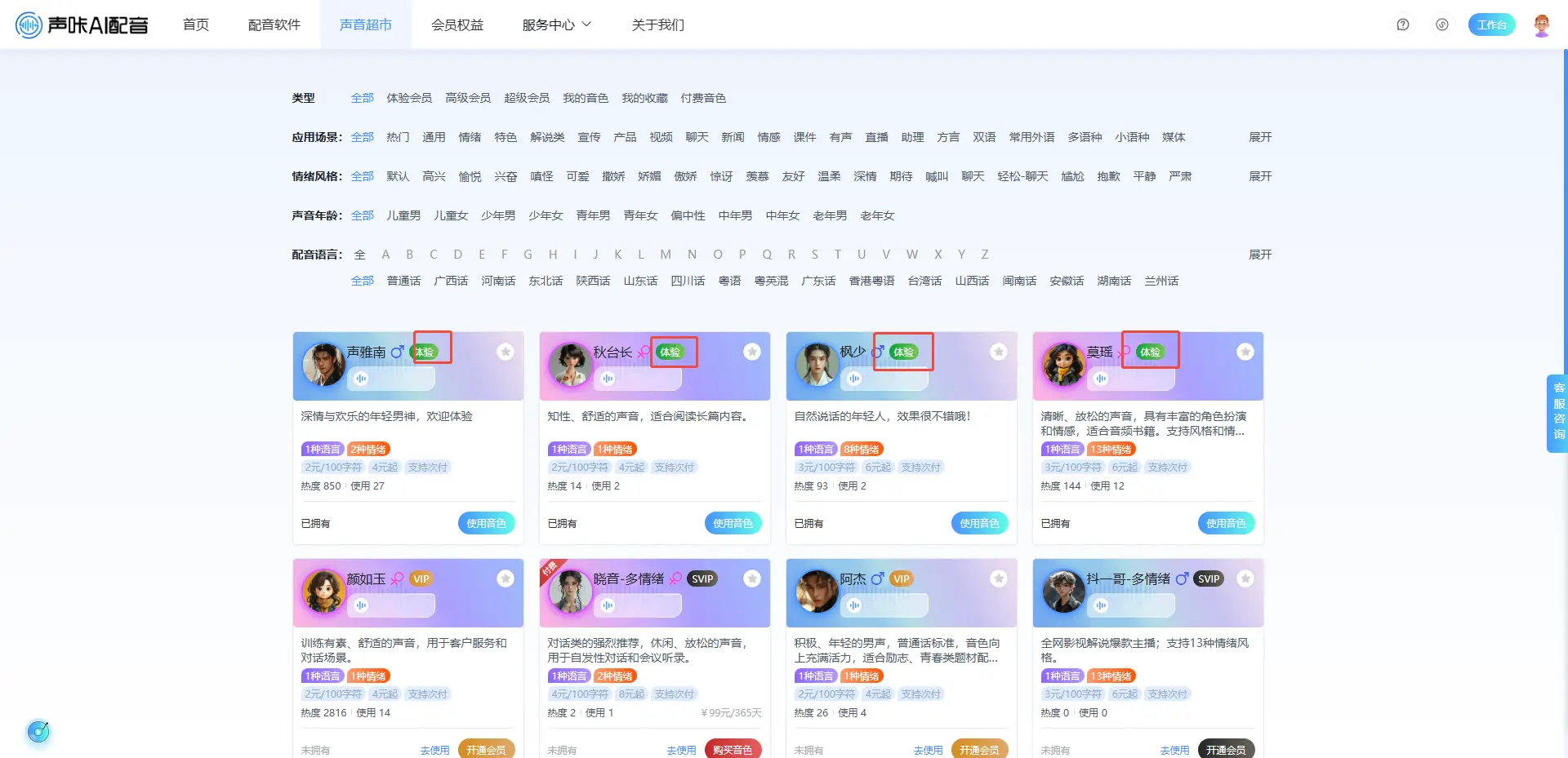 有体验标签的音色为体验音色