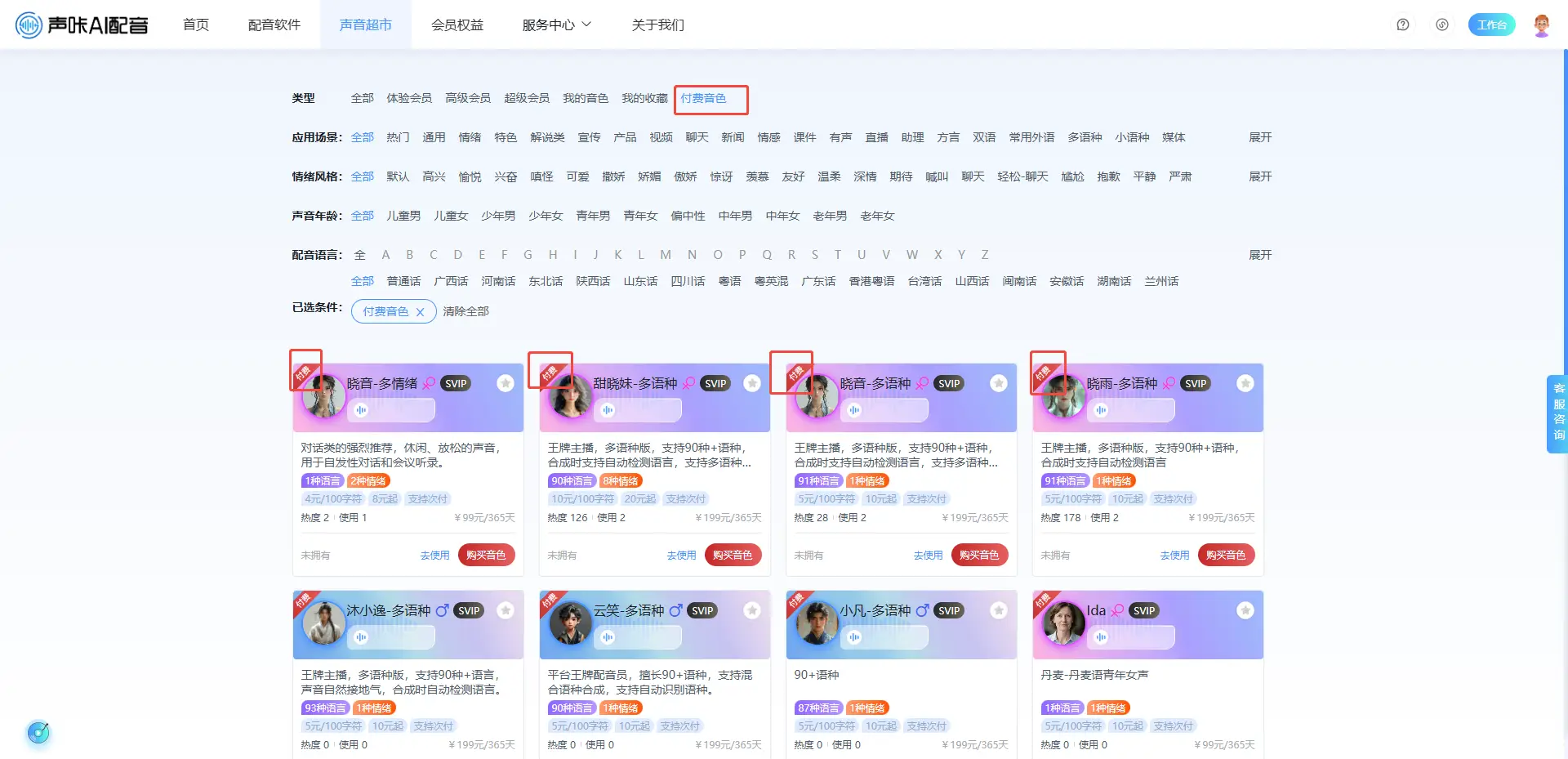 付费音色:即需要单独购买才能进行使用的音色。
