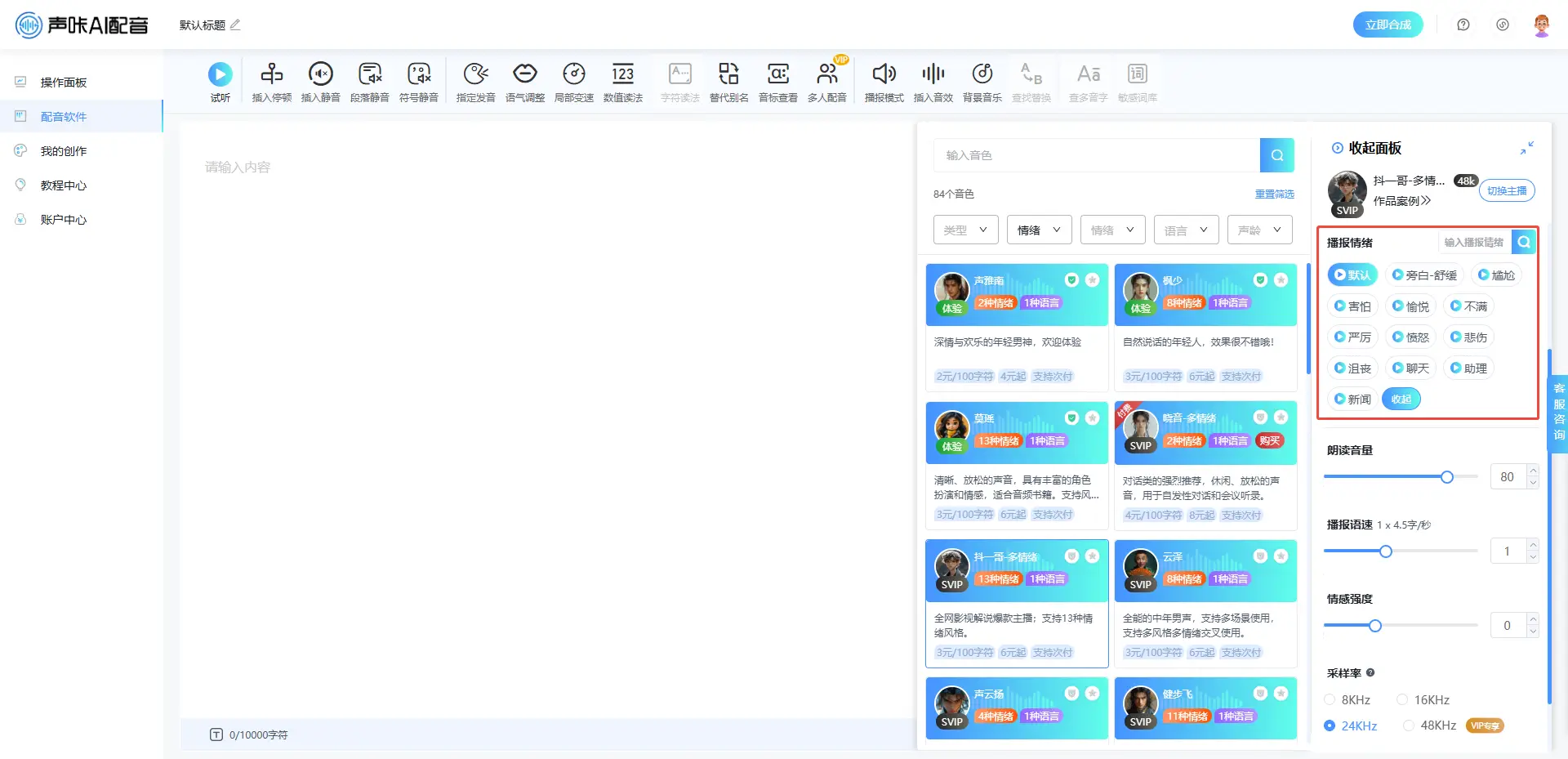 情绪音色使用:SVIP支持使用额度进行使用,体验会员和VIP支持按次付费使用。